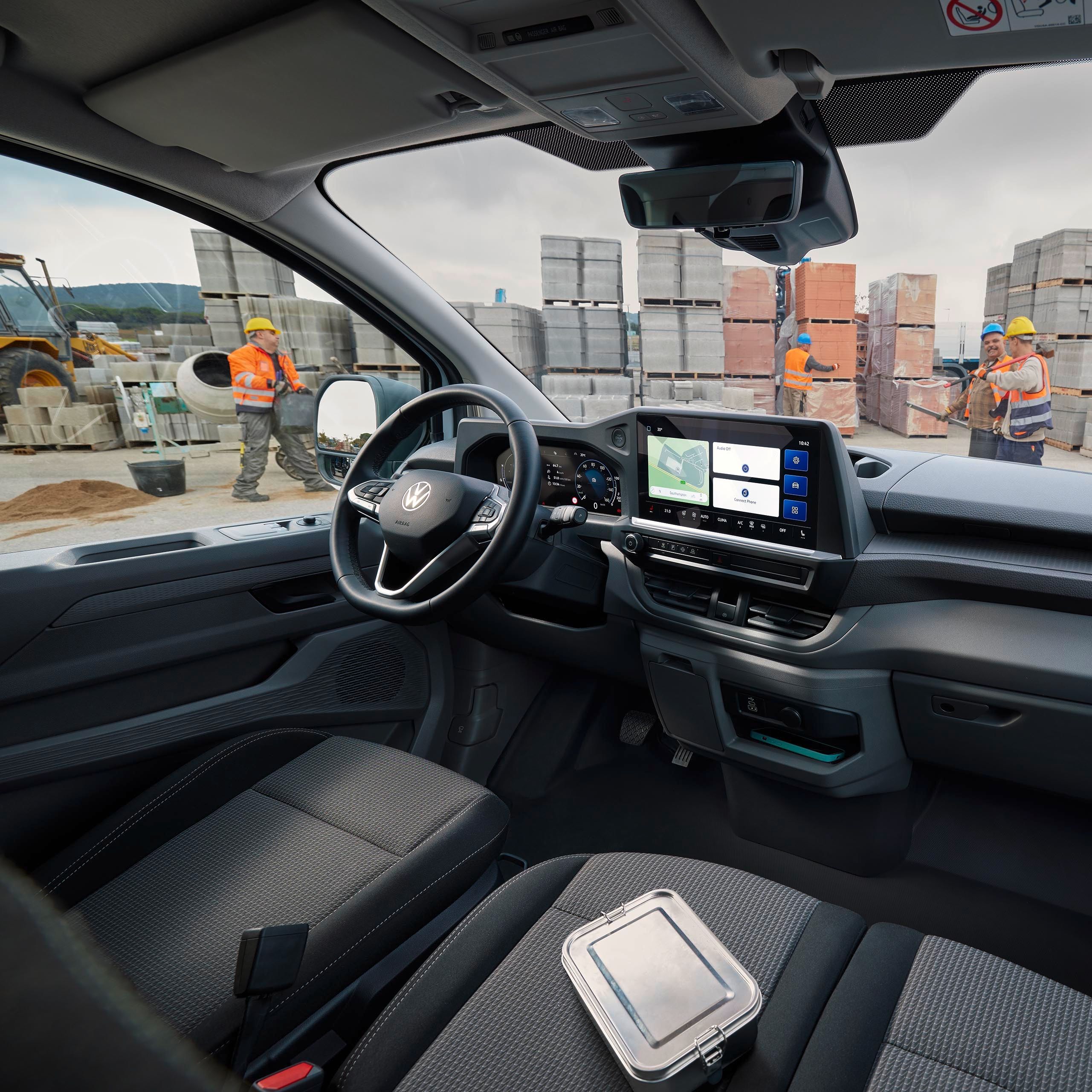 Ako želite puno obaviti, morate biti u mogućnosti da prevezete puno: Zato novi Transporter Furgon i novi e-Transporter Furgon imaju mjesta za do 3 euro palete ovisno o međuosovinskom razmaku. Bilo da želite prevoziti rol kontejnere ili drugu glomaznu robu sa 2 dužine vozila, 2 visine krova, odličnom utovarivošću i dobro promišljenim osiguravanjem tereta, Transporter Furgon vas podržava u gotovo svim zadacima svakodnevnog rada. Osim toga, potpuno redizajnirana vozačka kabina nudi jedno od najudobnijih radnih mjesta za česte vozače - i po želji se može još više nadograditi tako da vi i vaš tim možete doći na gradilište još opuštenije svaki dan.
